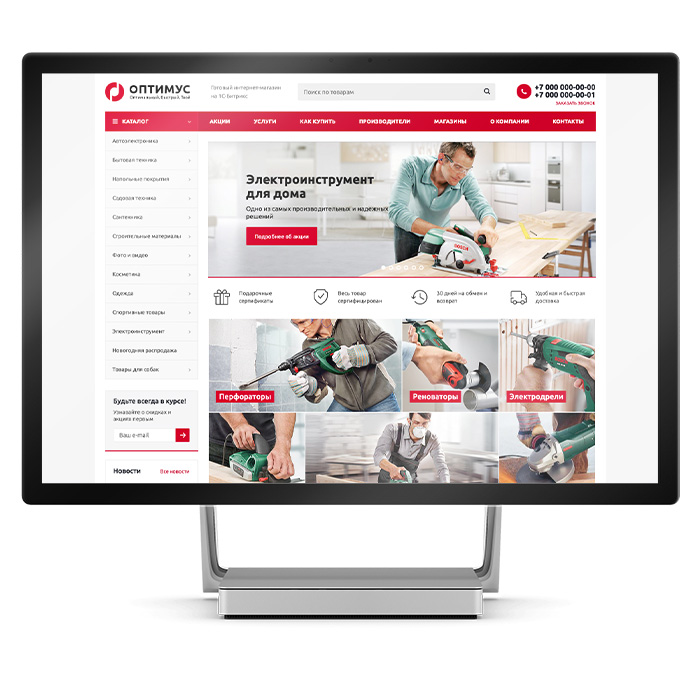 • Новости: http://optimus.aspro-partner.ru/company/news/.