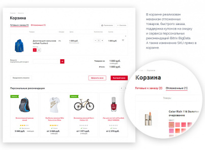 Активируйте ту корзину, которая подойдет для целевой аудитории сайта. Настройте кнопку покупки для отсутствующих товаров: добавлять в корзину, прятать кнопку добавления в корзину, выводить под заказ, выводить кнопку подписки на товар. Адаптируйте онлайн-проект под специфику бизнеса и зарабатывайте с первого дня.